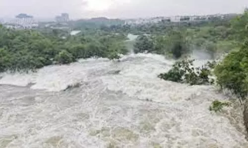 ఓఆర్ఆర్ మంచిరేవుల సర్వీస్ రోడ్డుపైకి చేరిన వరద ప్రవాహం